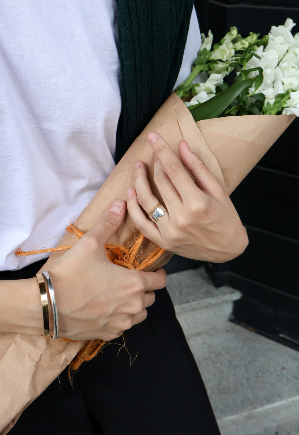 Um toque de elegância para qualquer ocasião. Este anel ajustável é feito em latão com tratamento hipoalergênico, garantindo conforto e segurança para todos os tipos de pele.